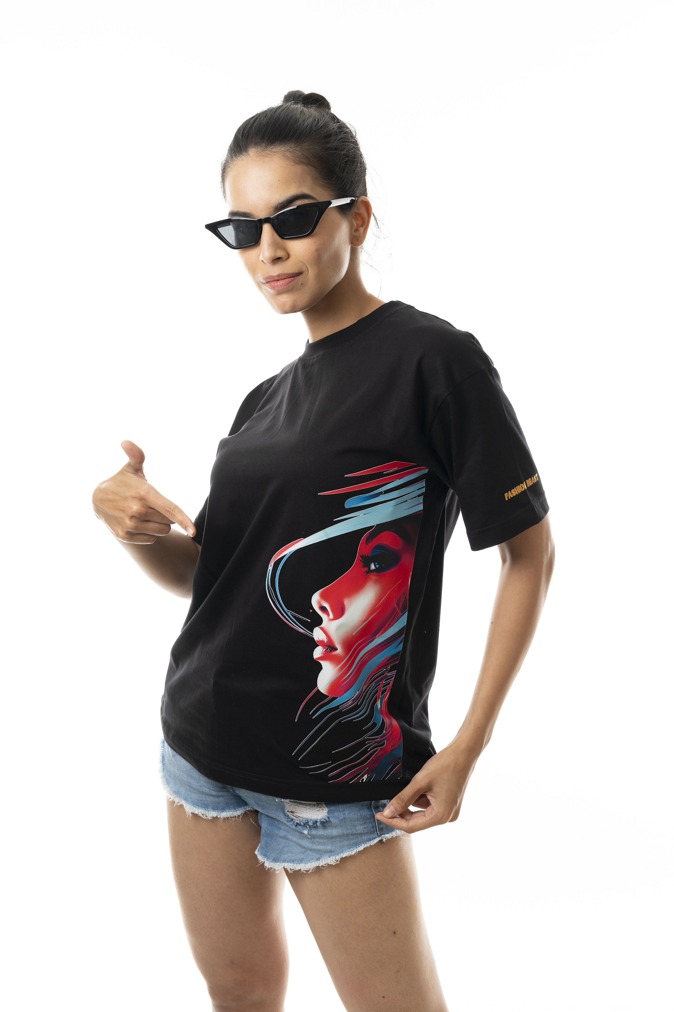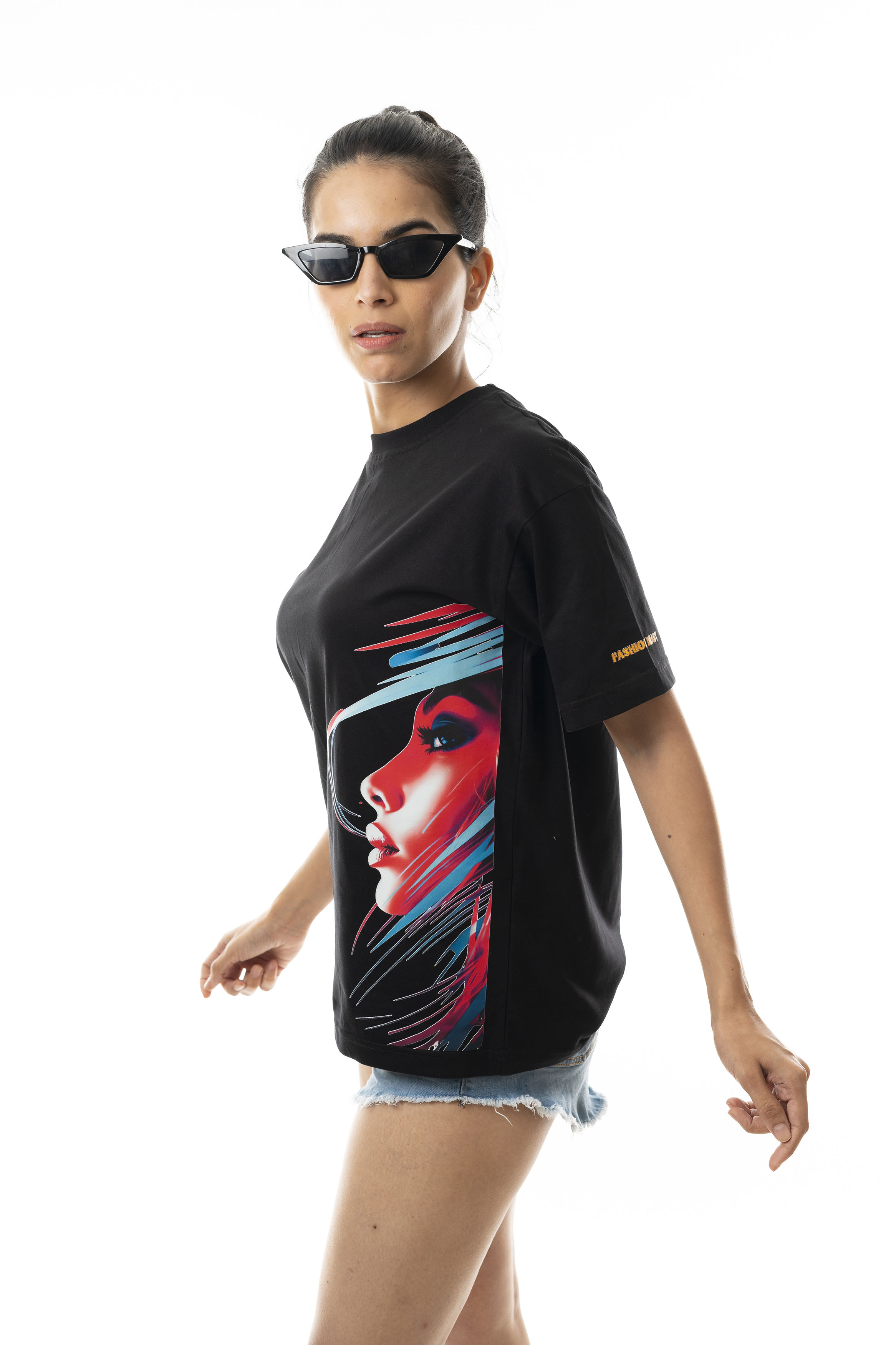 SASSY GIRL SIDE FACE | Women's Printed Dropped Shoulder/ Oversized T-shirt
