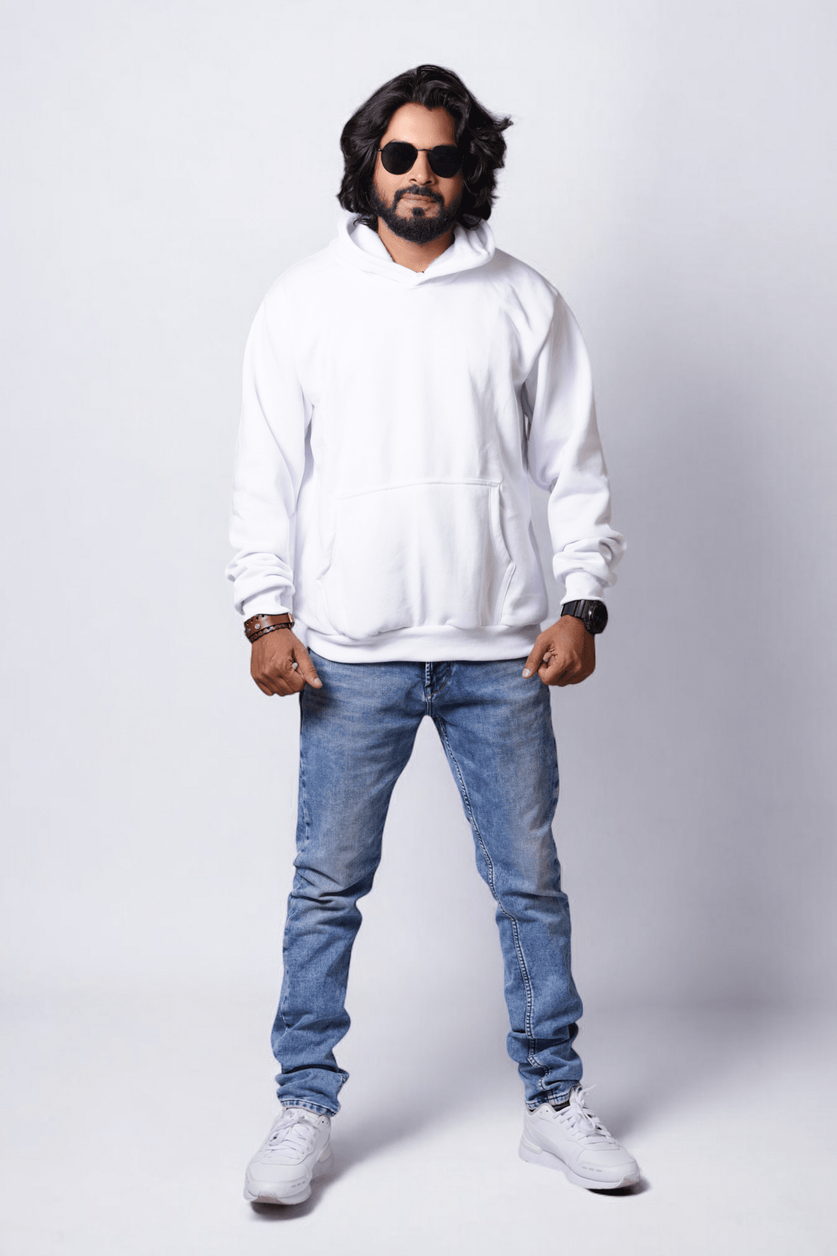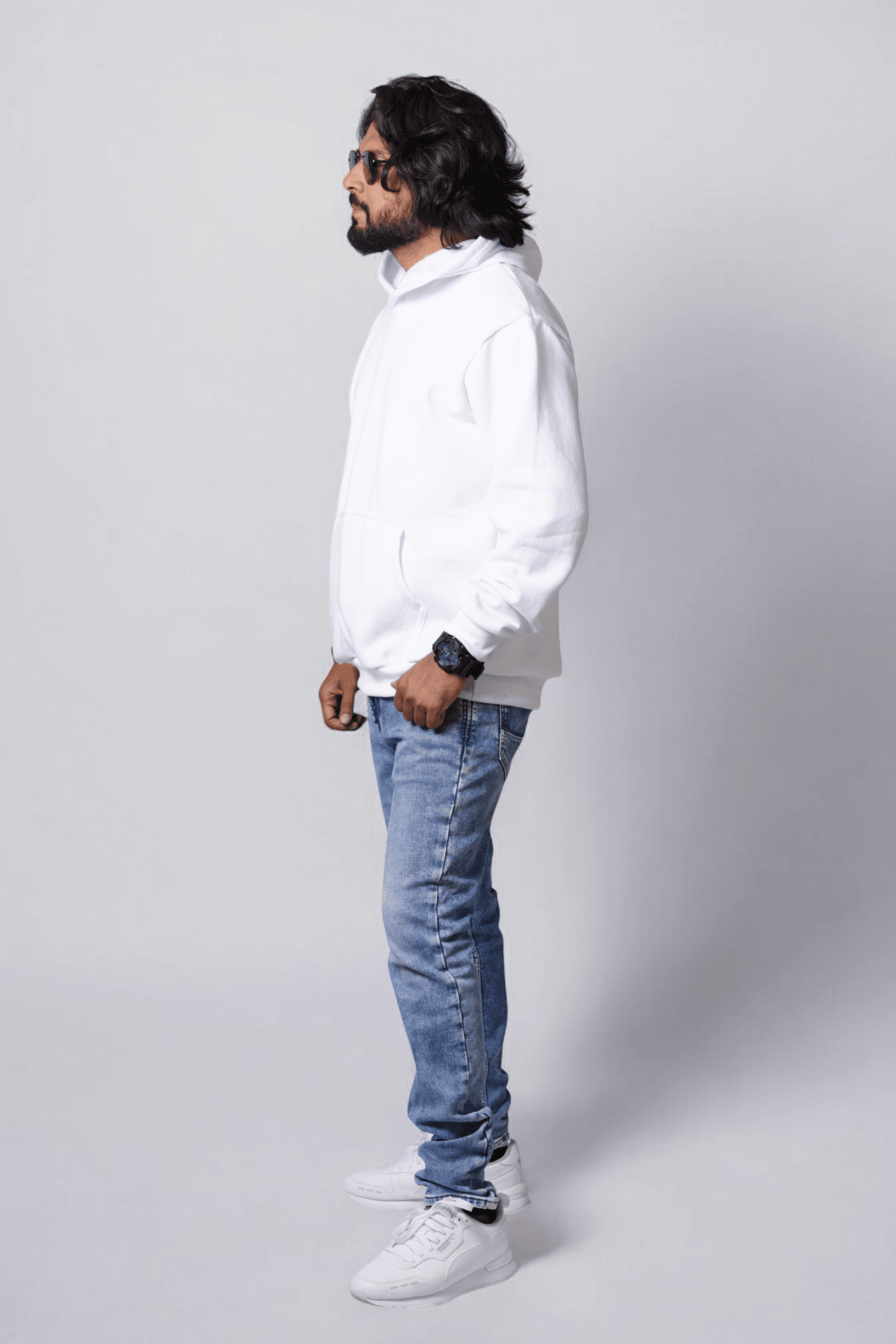 Men’s White Colour Solid Hoodie