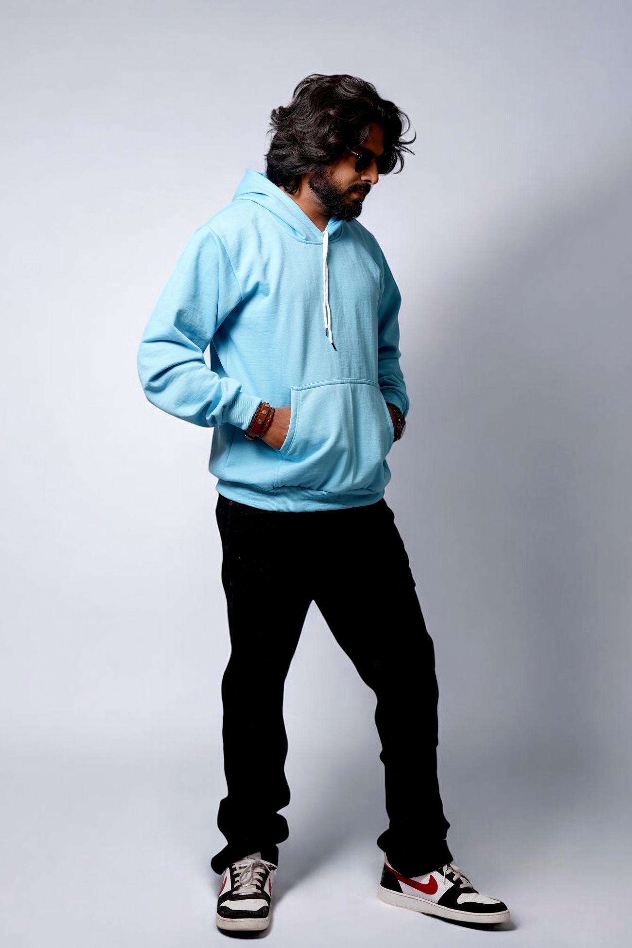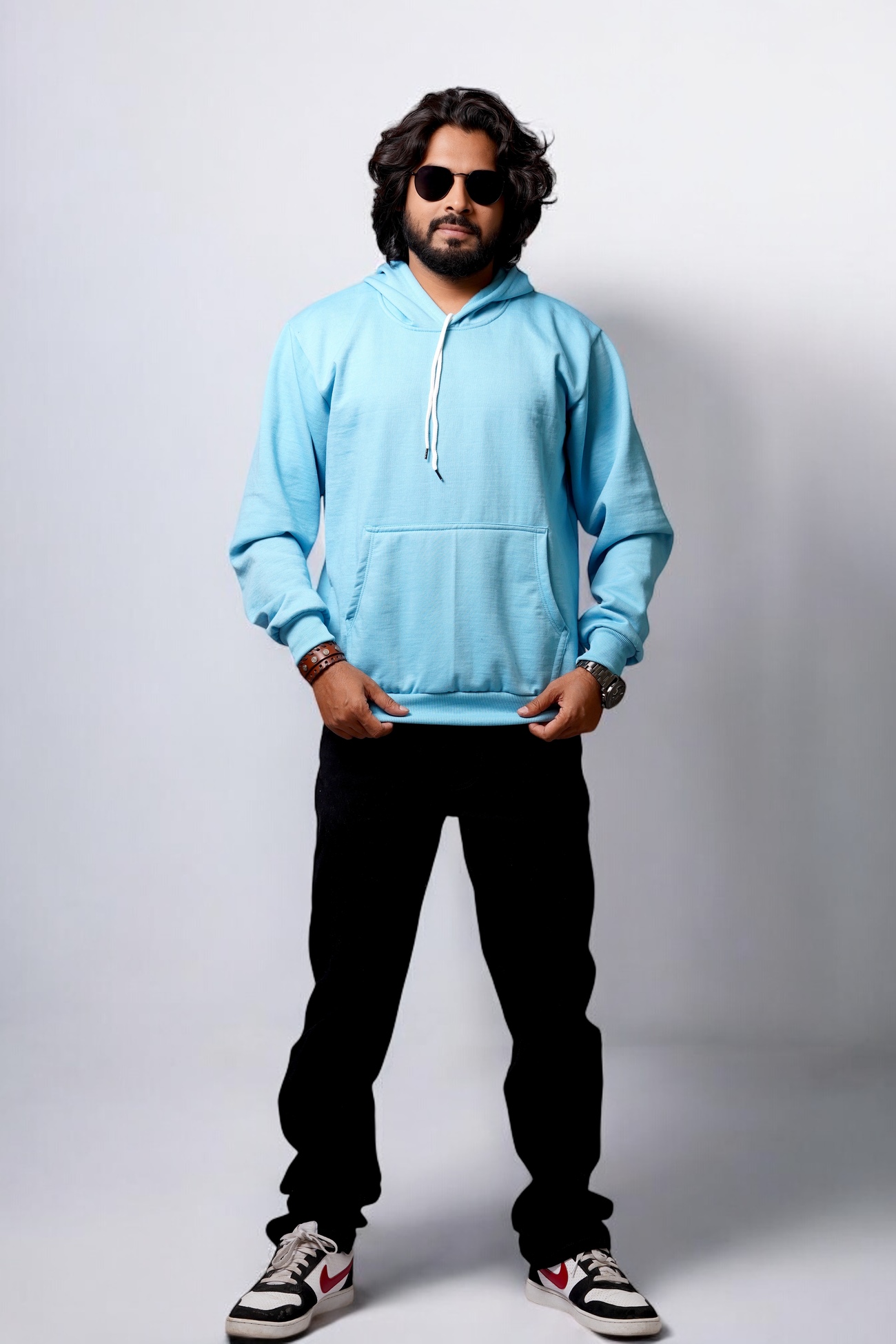 Men’s Sky Blue Colour Solid Hoodie